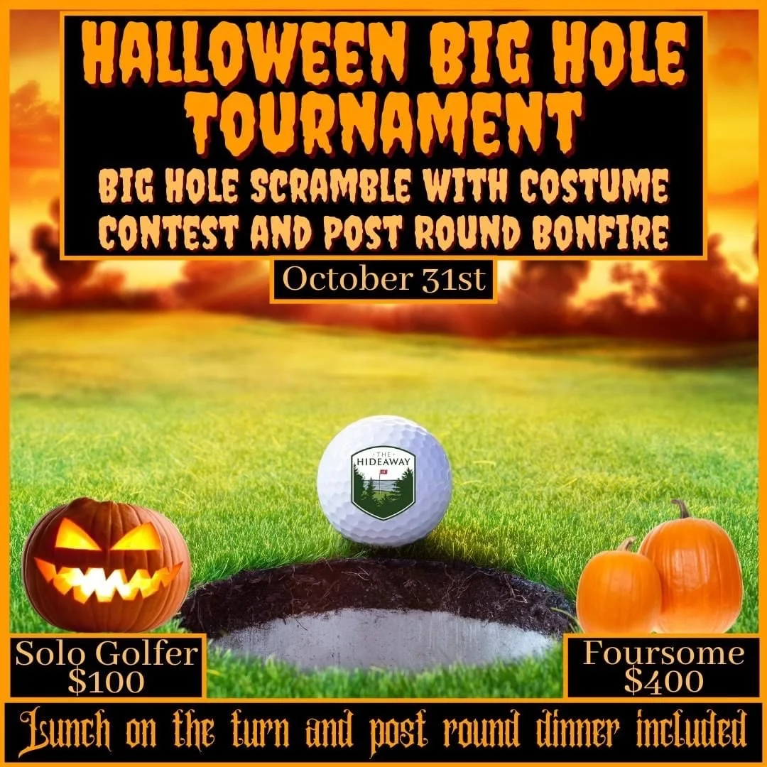 Join us for golf, costume contest, and a post round bonfire! https://hideawaysaratoga.com/shop-now/