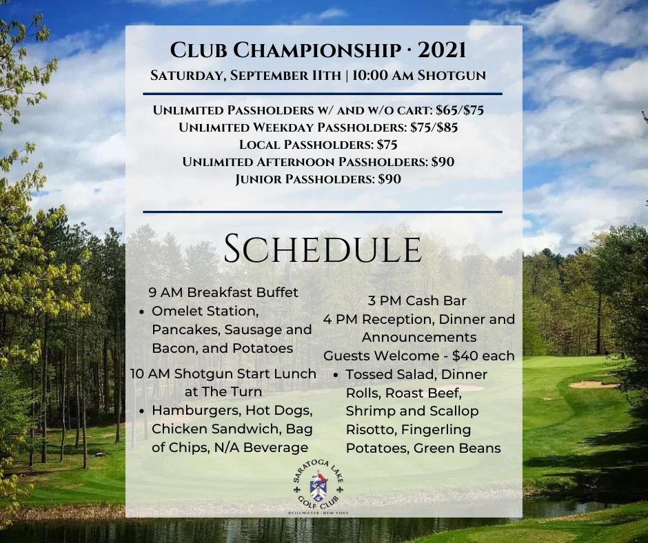 Club Championship Join us September 11th for a 18 hole 10 AM shotgun start + Add to Google Calendar + iCal / Outlook export Search Recent Posts 2026 Golf Leagues – Registration OPEN! Keep Your Swing Hot This Winter! Tee Up Your Holiday Luck Indoor Golf through the Winter Black Friday Sale – 50% Added Value Recent CommentsArchives January 2026 December 2025 November 2025 October 2025 September 2025 August 2025 July 2025 June 2025 May 2025 April 2025 March 2025 February 2025 January 2025 December 2024 November 2024 October 2024 September 2024 August 2024 July 2024 June 2024 May 2024 April 2024 March 2024 February 2024 January 2024 December 2023 November 2023 October 2023 September 2023 August 2023 July 2023 June 2023 May 2023 April 2023 March 2023 February 2023 January 2023 December 2022 November 2022 October 2022 September 2022 August 2022 July 2022 June 2022 May 2022 April 2022 March 2022 February 2022 January 2022 December 2021 Categories Course News Golf News Golf Tips Special Offer Tournament Uncategorized Wedding Tips Meta Log in Entries feed Comments feed WordPress.org About Us At Saratoga Lake Golf Club, we are the premier golf course and driving range serving the Saratoga Springs, NY area. Give us a call today so you can play golf the way you always dreamed or to learn more about ourĀ golf club and golf packages! Contact 35 Gracemoore Rd. Saratoga Springs, NY 12866 (518) 581-6616 [email protected]